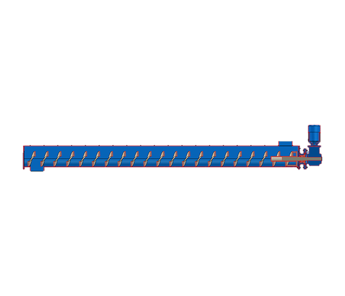 無軸螺旋輸送機(jī)的螺旋葉片采用不銹鋼材料通過專用模具的澆鑄而成,因而具有足夠的強(qiáng)度和剛度并且葉片表面光潔、又具有合適的旋轉(zhuǎn)速度,有效保證在輸送柵渣的過程中不會發(fā)生污物纏繞、阻塞現(xiàn)象,同時在輸送量較大的情況下螺旋葉片也不會變形。U型螺旋輸送槽內(nèi)耐磨襯里設(shè)置成半圓狀,其圓弧設(shè)置成與無軸螺旋體半徑相吻合以減少過量間隙來提高輸送效果;耐磨襯里采用耐磨性能高的尼龍材料制作,便于安裝及更換,使用壽命長。U型螺旋槽采用不銹鋼板卷制而成,除進(jìn)料口敞開外,其余部份沿螺旋槽加平蓋封閉,整個傳輸過程在一個密封的槽中進(jìn)行,降低噪聲,減少了異味的排出;在U型槽的底部設(shè)有排放口,并配套排水球閥。